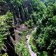 龙山湖呈条状蜿蜒伸展,长130公里,宽2公里,窄处仅400米。湖西与长白山老岭山脉相毗邻,湖南与集安市相对接,隔水与朝鲜相望。湖内峦峰翠微,山青水秀,兼有石林之峻峭,三峡之烟云,雁荡之怪石,江南水乡之秀美。