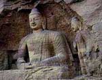 库尔勒锡克沁千佛洞,考古工作者在南大寺、北大寺发现不少泥塑佛头,南大寺出土的佛头细眉,面庞圆好,有犍陀罗风格,是公元6-7世纪的作品。北大等的佛头带彩绘,柳眉方脸,表现也东方审美情趣,估计是公元8-9世纪的塑像,锡克沁千佛洞遗址紧靠公路,大寺遗址中间低处有一股清泉向北流去。 >> 详细介绍