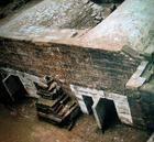 湖南金盆岭九号晋墓,墓壁用青砖结砌,先平砌三层,再树立砌一层,重复四次后起夯,穹窿顶已塌。有的砖一侧印有“永宁二年五月十日作”的篆字。墓内金属器皿已被盗一空,仅存随葬的青瓷器。各式瓷俑环列墓的四周,少数置于墓中,计有31件。 >> 详细介绍