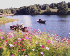 景区内草原与沙漠相连,沙漠中,又有一片小小的湖泊。湖中的十多座沙岛上,栖息着各种各样的