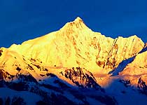 迪庆卡瓦格博峰,卡瓦格博峰从不接受人类足迹的染指,迄今仍是无人登顶的处女峰。卡瓦格博,藏语“白色雪山”之意,俗称“雪山之神”。传说原是九头十八臂的煞神,后被教化,皈依佛门,做了千佛之子领尕制敌宝珠雄师大王格萨乐麾下一员骠悍的神将,在藏区被列为八大神山之首。 >> 详细介绍