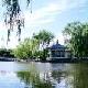 公园景色秀丽,风格自成。湖面一波碧水,园中绿荫扶疏,游览区有烁园、宜园、报春屿、胜蓝轩