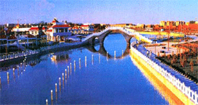 新疆河,克拉玛依河从城区东北入境,在城中曲折穿越后城区西南进入西郊水库,全长8.51千米,河宽约15米。 友谊桥是进入克拉玛依市的门户,桥主体魏斜拉桥,风格独特,美观精巧。全桥采用高杆灯及彩球射灯照明,塔柱安装霓虹软管装饰灯,斜拉索安设跑灯带,成为克拉玛依河上一重要的景点。 >> 详细介绍