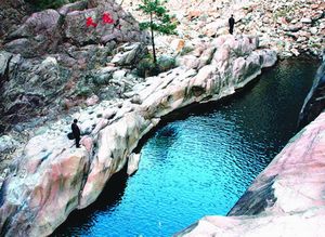 清远天龙峡,1965年在龙潭河出山口修筑一条高48米、长157米的混凝土大坝,坝面形成了一座蓄水1.7亿立方米、湖面13平方公里、海拔650米的潭岭天湖。坝底水流锐减、河底的奇岩怪石浮露出水面,形成一条峡谷型的奇石走廊。 >> 详细介绍