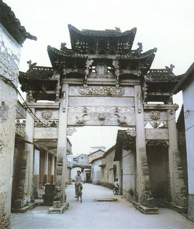 松阳詹士兄弟进士牌坊,青石雕刻,仿木结构,四柱三间石楼,歇山顶。坊高8.52米,面阔6.9米,额榜两面分别阴刻“兄弟进士”、“父子贤科”。为省级文物保护单位。 。 >> 详细介绍