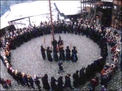贵州掌坳苗寨,掌坳最负盛名的是这里的铜鼓舞(这里是铜鼓舞的发源地)。舞蹈风格古朴、奔放热烈,男子跳舞强悍、豪迈,女子舞步则轻曼、明练。跳铜鼓舞已成为这里的风俗,无论青年男女还是老幼妇孺,都能随着乐曲,舞之蹈之。 >> 详细介绍