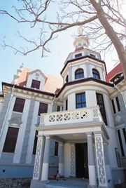 河北袁氏宅邸,主楼平面为“L”形,三层砖木结构,局部带地下室,占地1836平方米,建筑面积2217平方米。入口处设四层塔楼。门廊方柱与圆柱相结合,底层有大客厅、餐厅、书房等。客厅外有柱廊,其上也有一塔楼。 >> 详细介绍