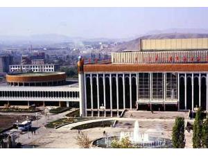 乌鲁木齐人民会堂,会堂顶部是金黄色琉璃檐板,四角竖着4座直径2米的乳白色圆塔,正面有20根22米高的浅灰色大理石廊柱及大型茶色玻璃。前厅镶嵌着目前我国最大的一幅巨型大理石壁画──《天山之春》。 >> 详细介绍