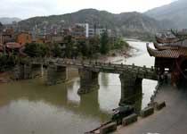 怀化迥龙桥,位于通道侗族自治县坪坦乡坪日村小溪河上。始建于清代,曾两度被水冲毁。此桥为1931年重建,是省级重点文物保护单位。桥身是石墩木梁,长62.4米,桥面宽3.75米,高4米。桥廊两侧有栏杆和木凳。 >> 详细介绍