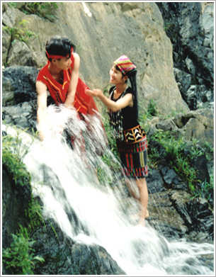 沿着南圣河北岸走2公里便是。这儿周围群山滴翠,田畴连片,一派田园风光,是黎胞聚居的自然