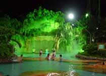 广东蓝月湾温泉,蓝月湾温泉包括一个大泡池、四个中泡池、三十多个风情各异的小泡池及大小游泳池各一个。蓝月湾温泉源自600多米地底深处,经地质矿产部广东省中心试验室专家检测,泉水水温43摄氏度,水质无色透明纯净,不受地表污染,富含偏硅酸,铜,锶,硒等多种有益人体健康的矿物质,对风湿,关节炎,神经性骨痛等多种疾病均有特殊疗效,在美容,减肥方面更是有显著功效,露天温泉区有SPA水疗区、石板温泉、蒸汽浴、贵宾房以及功能各异的大小温泉泡池三十六个,是一个都市人缓解压力,享受惬意人生的理想之地。 >> 详细介绍