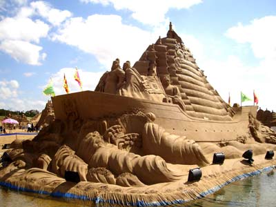 浙江朱家尖,金沙绵亘,碧波荡漾,奇石峻拔,林木葱郁,风光秀丽,空气怡人。9个金色的沙滩,是长三角最大的组合沙滩群。1999年将丰富的海滩资源嫁接西方现代艺术,开创了中国舟山国际沙雕节,每年一届的沙雕节的举办,海洋文化与海洋旅游经济完美结合,成为中国滨海旅游节庆成功典范。 >> 详细介绍